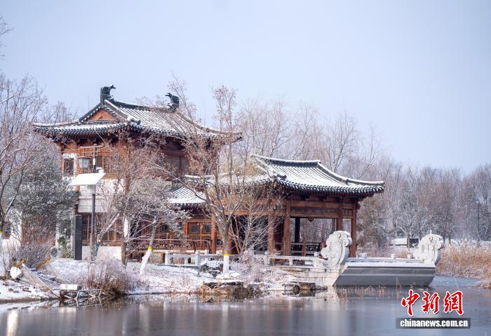 12月13日,雄安悦容花园内乱雪后景致。中新社记者 韩冰 摄