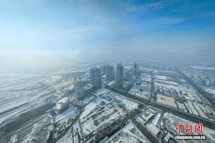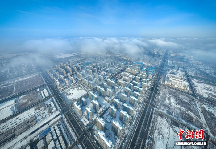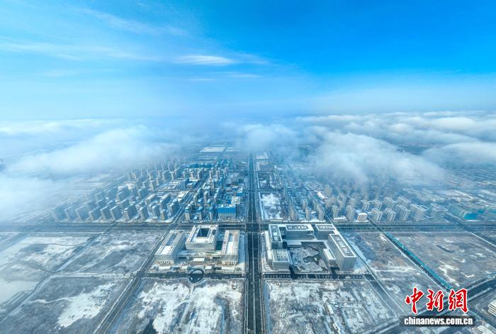 12月13日,航拍雪后雄安新区开动区。中新社记者 韩冰 摄